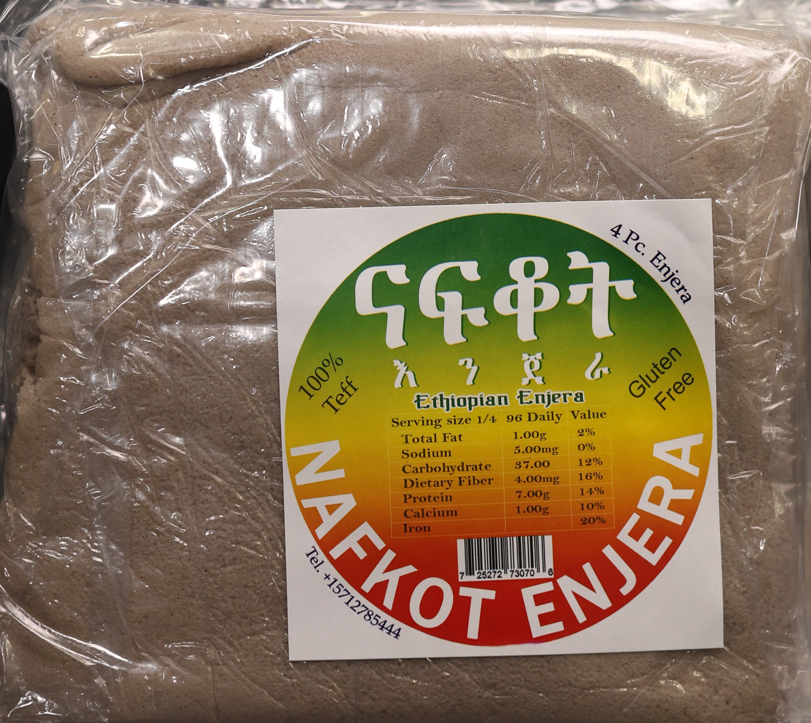 Nafkot package contains 4 large pieces of injera and it is made 100% of Teff therefore it is gluten free.