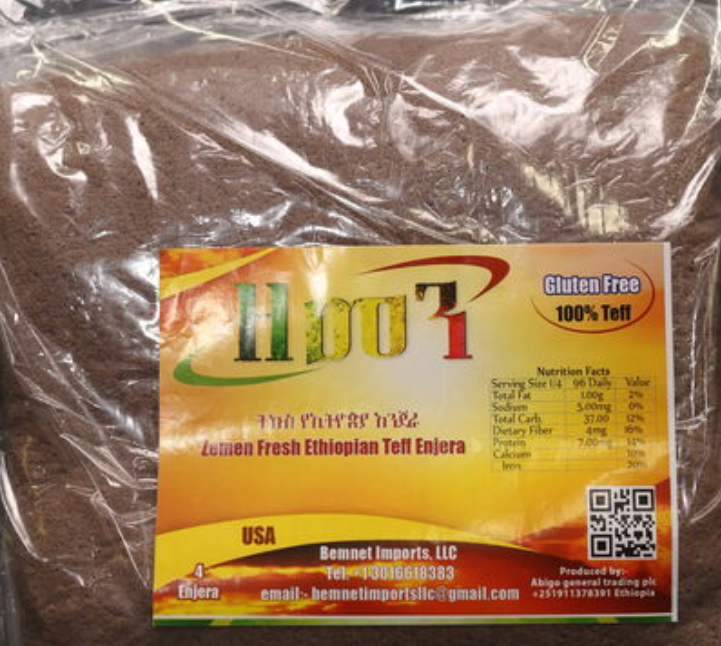There are two kinds of Injera sold here. Ethiopian Injera and Injera made in the United States. Most are confused as to how injera made in Ethiopia makes it here in time to be consumed.
